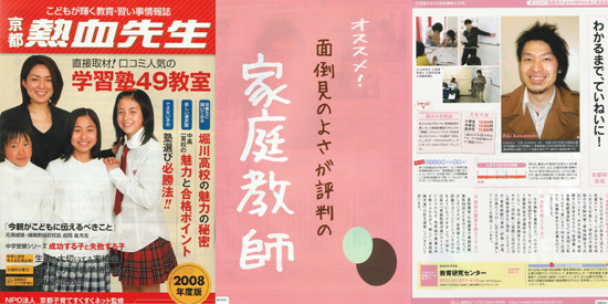 熱血先生に「オススメ!面倒見のよさが評判の安心家庭教師」として京都で唯一掲載されました。