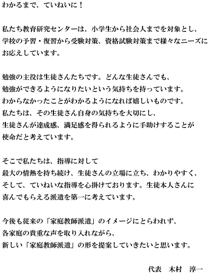 家庭教師派遣を始めて40年以上を迎える教育研究センターです。